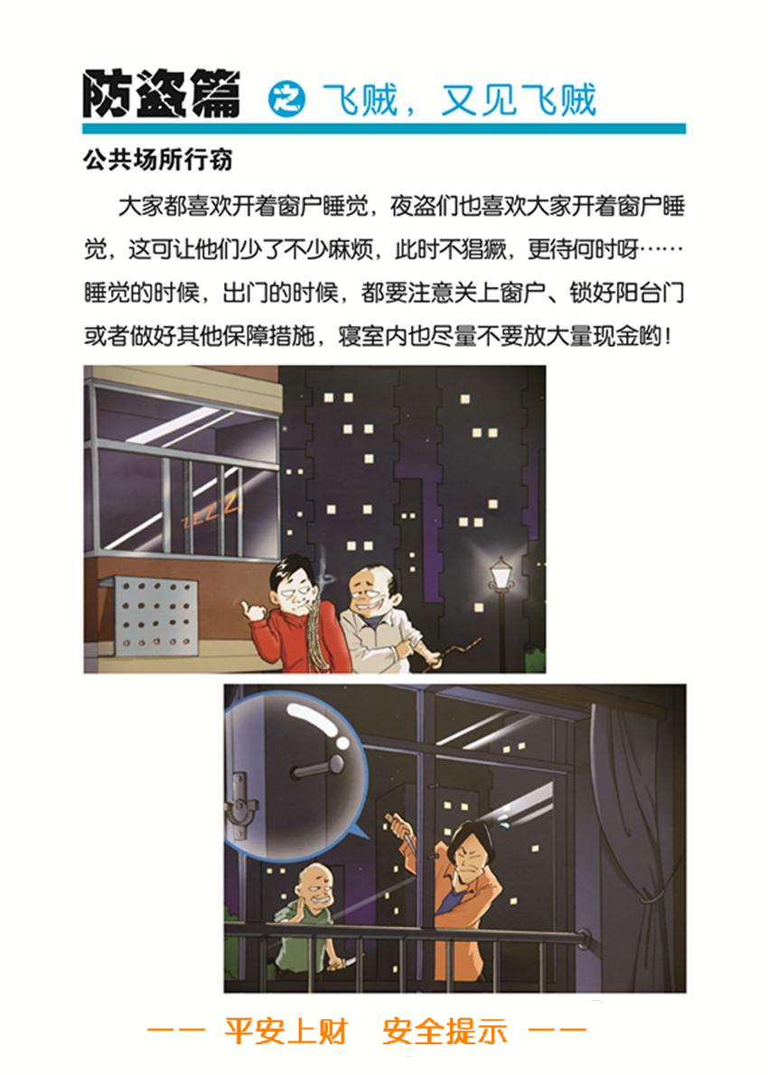 大家都喜欢开着窗户睡觉,夜盗们也喜欢大家开着窗户睡觉,这可让他们少了不少麻烦,此时不猖獗,更待何时呀……睡觉的时候,出门的时候,都要注意关上窗户、锁好阳台门或者做好其他保障措施,寝室内也尽量不要放大量现金哟!