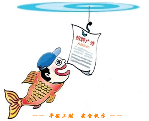 骗子瞄准大学生求职心切的心理,声称足不出户即可谋职,家中办公同样获得高薪,他们一般冒充招聘打字员,薪水高达每万字数百元,录取后将打好的文档直接通过点击邮件网址发送即可,但要求缴纳一定金额的管理费、押金,而汇款后骗子就失去联系了。校保卫处提醒广大寻找兼职的同学提高警惕!